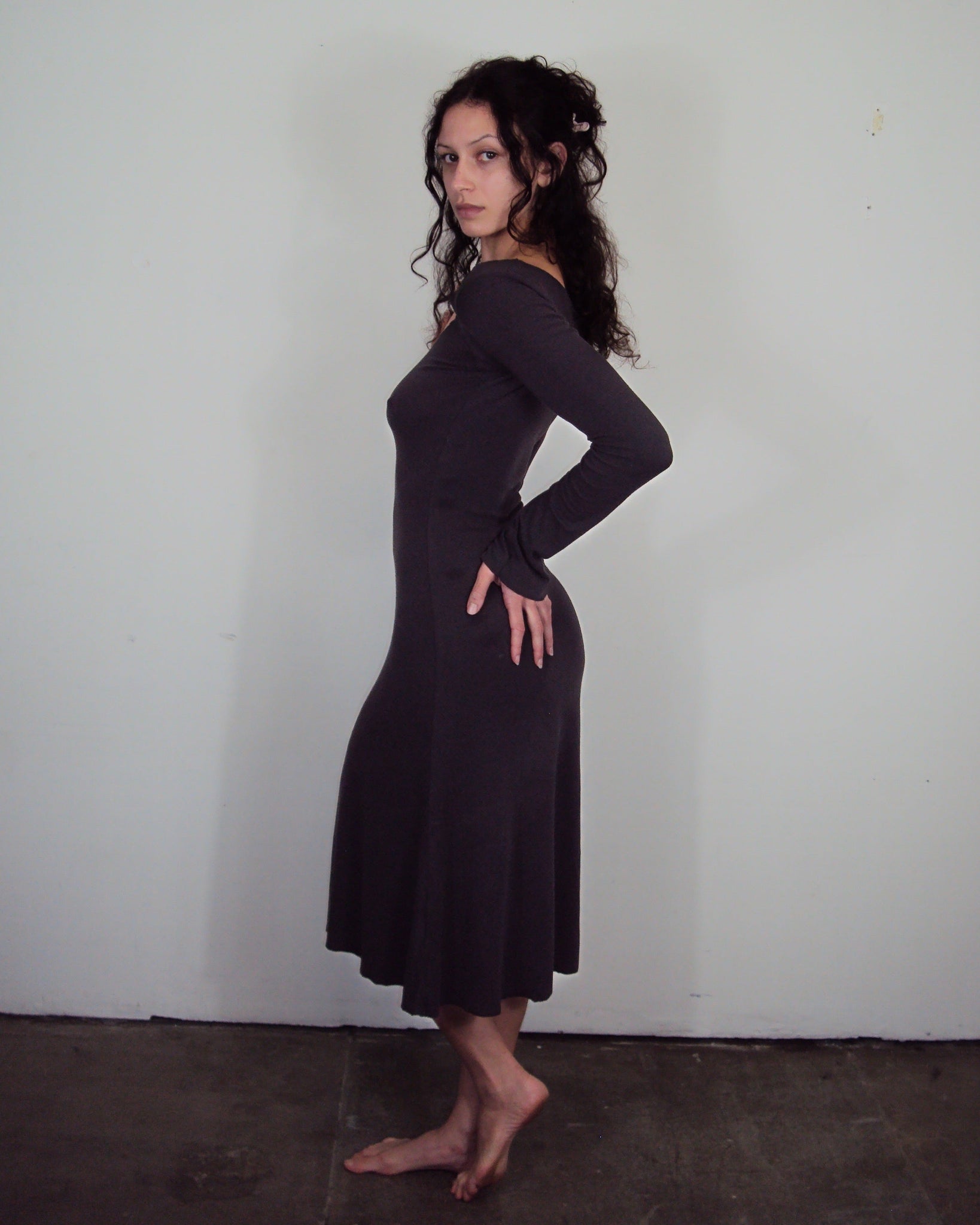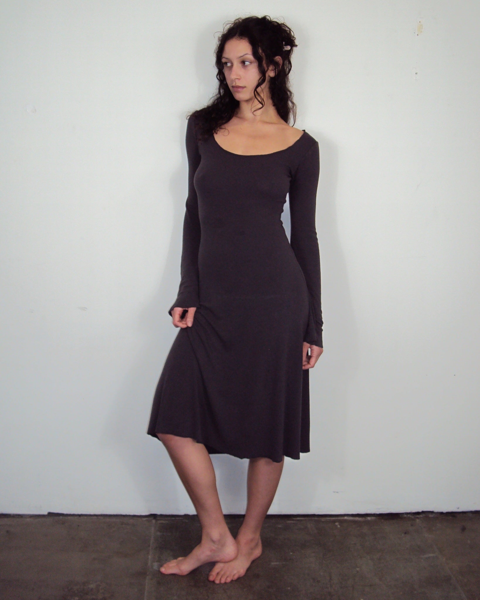 Low Rounded Neckline, Our signature Long Sleeves, Midi Length